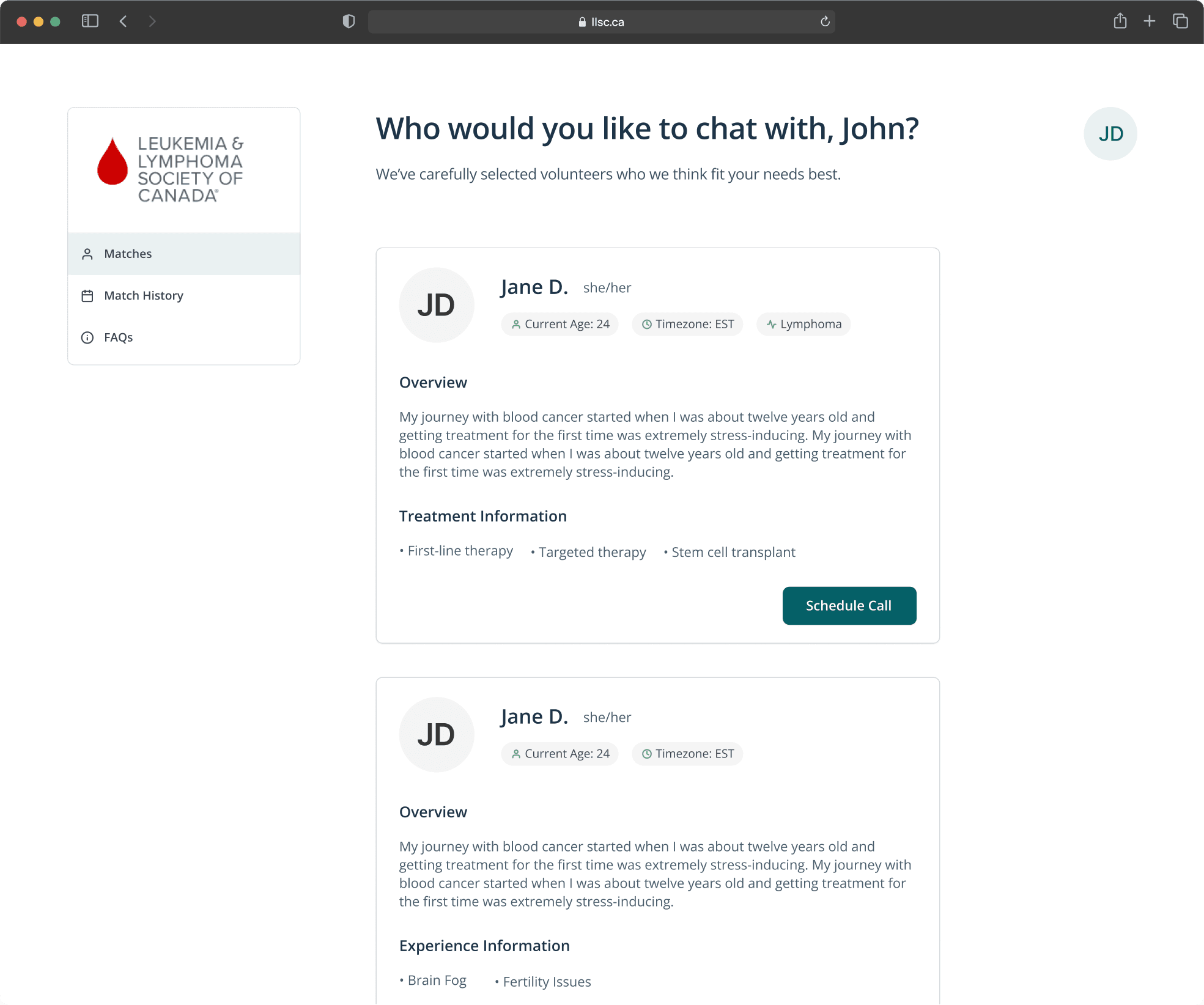 There is currently no automated system to match participants and volunteers based off of certain criteria like blood cancer type, age, and gender. Because of this, admin has to manually match 400+ individuals, while communicating back-and-forth to schedule calls between these individuals.
