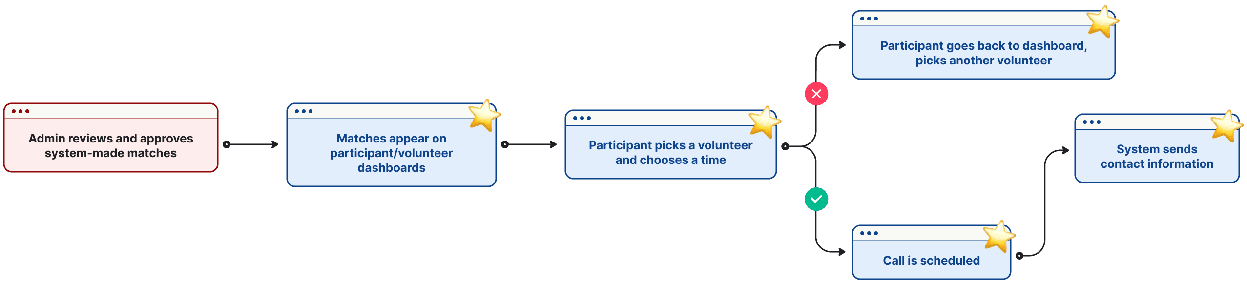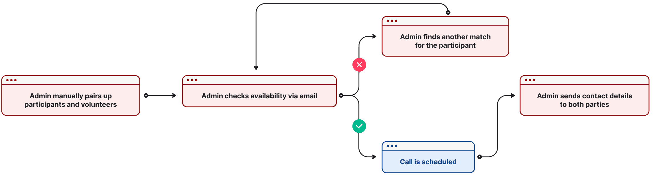 That's where we come in! Our solution provides automated matching, scheduling and streamline admin approval and communication.