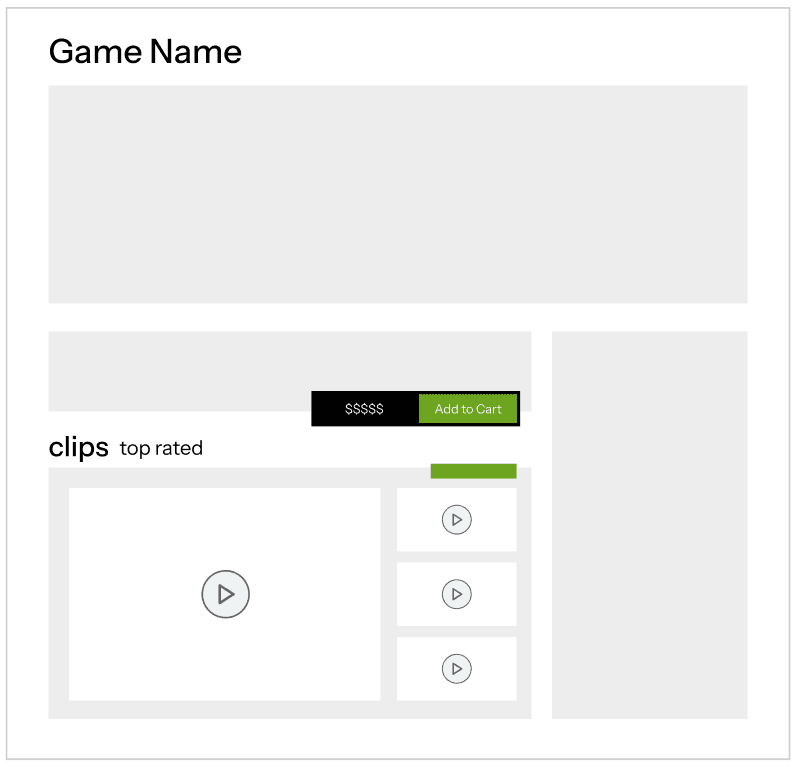 After evaluating the different design concepts and layouts for the "Clips" section, I landed on the third design concept, an autoplaying vertical feed, as it aligned well with familiar user behaviours from other popular social apps, encourages continuous viewing, and makes the experience engaging, allowing users to be confident in purchasing decisions. This concept addressed key pain points around the lack of viewing meaningful gameplay and using short-form content to build bonds.