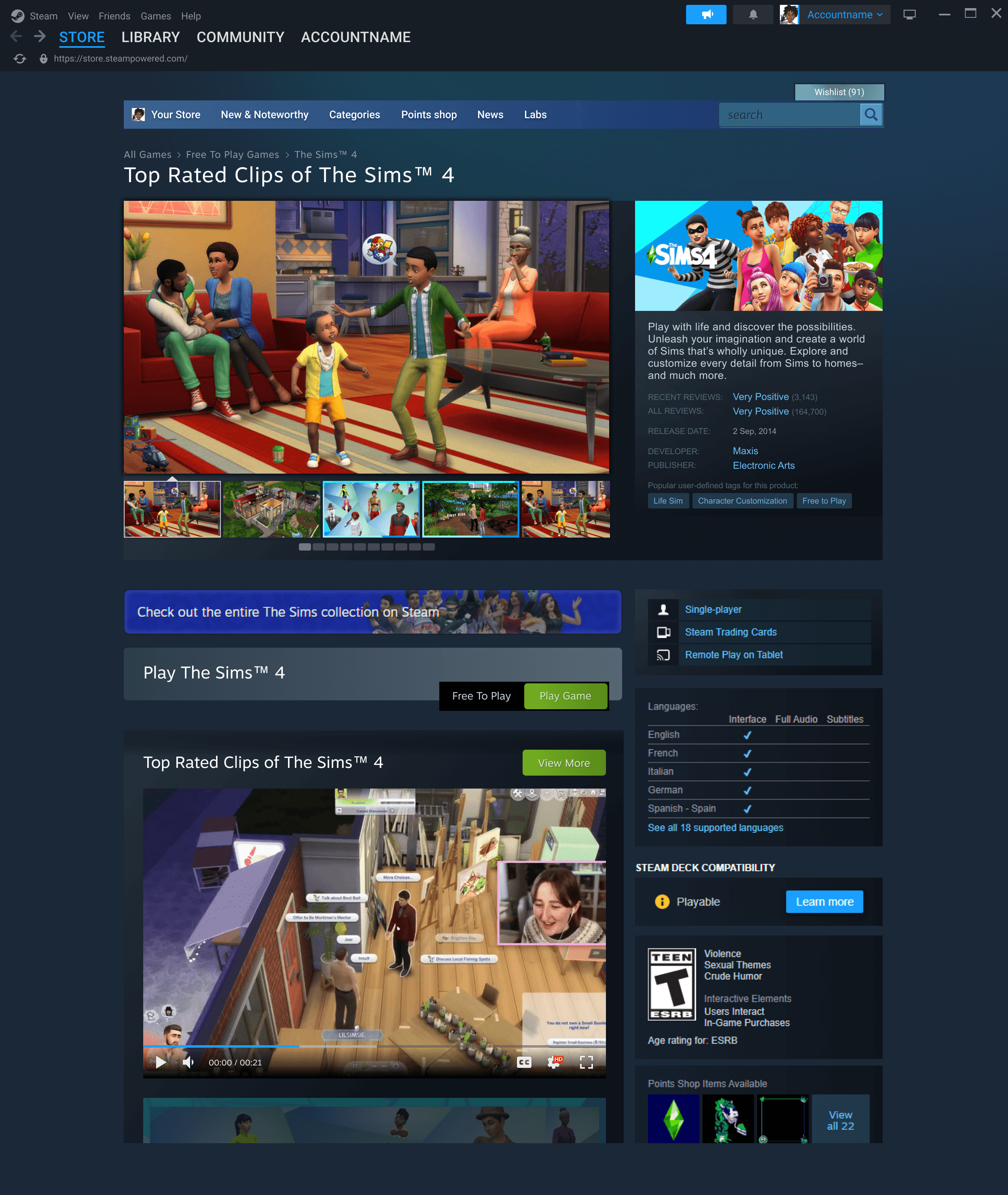 Browsing for games and categories on Steam